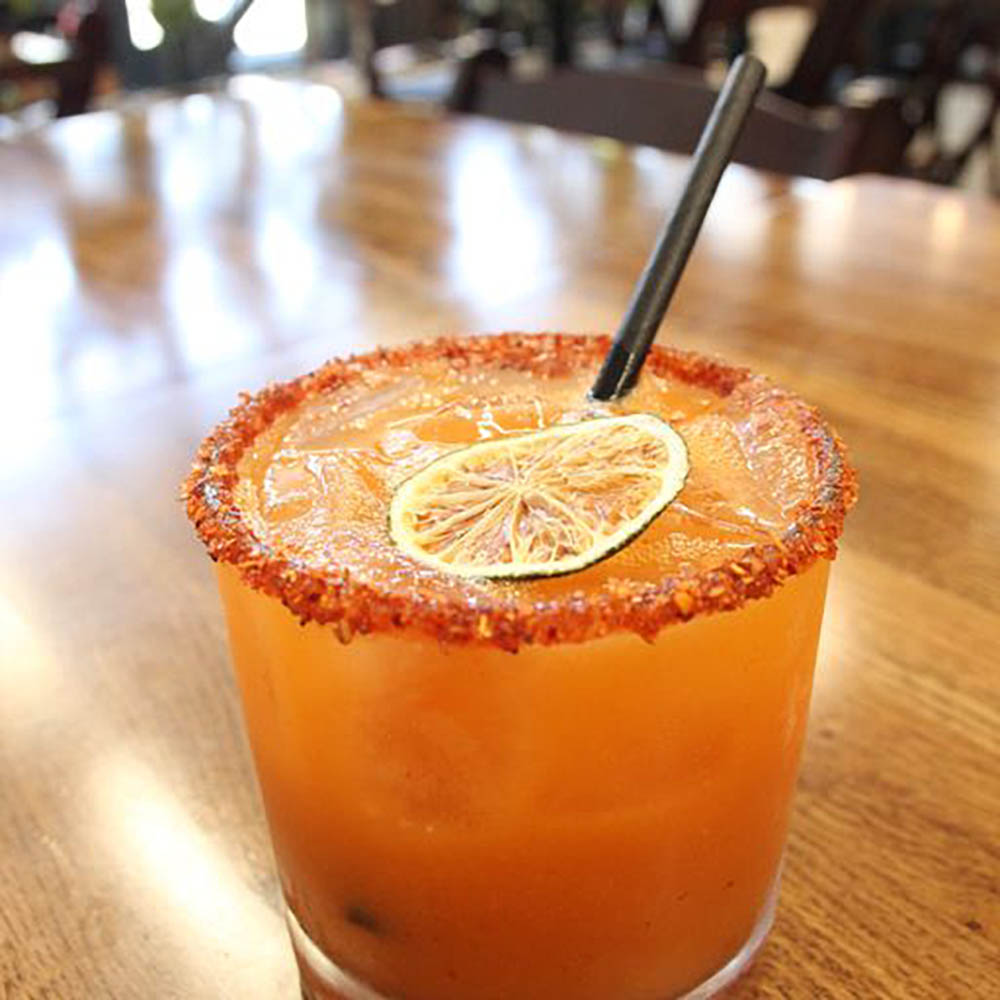 Mezcal, mango-bell pepper sangrita, lime juice, chamoy, tajin-rim